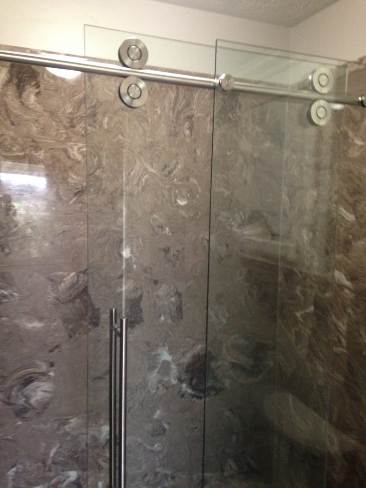 - Brush Nickel Frameless with Step Up Panel, Clear Glass